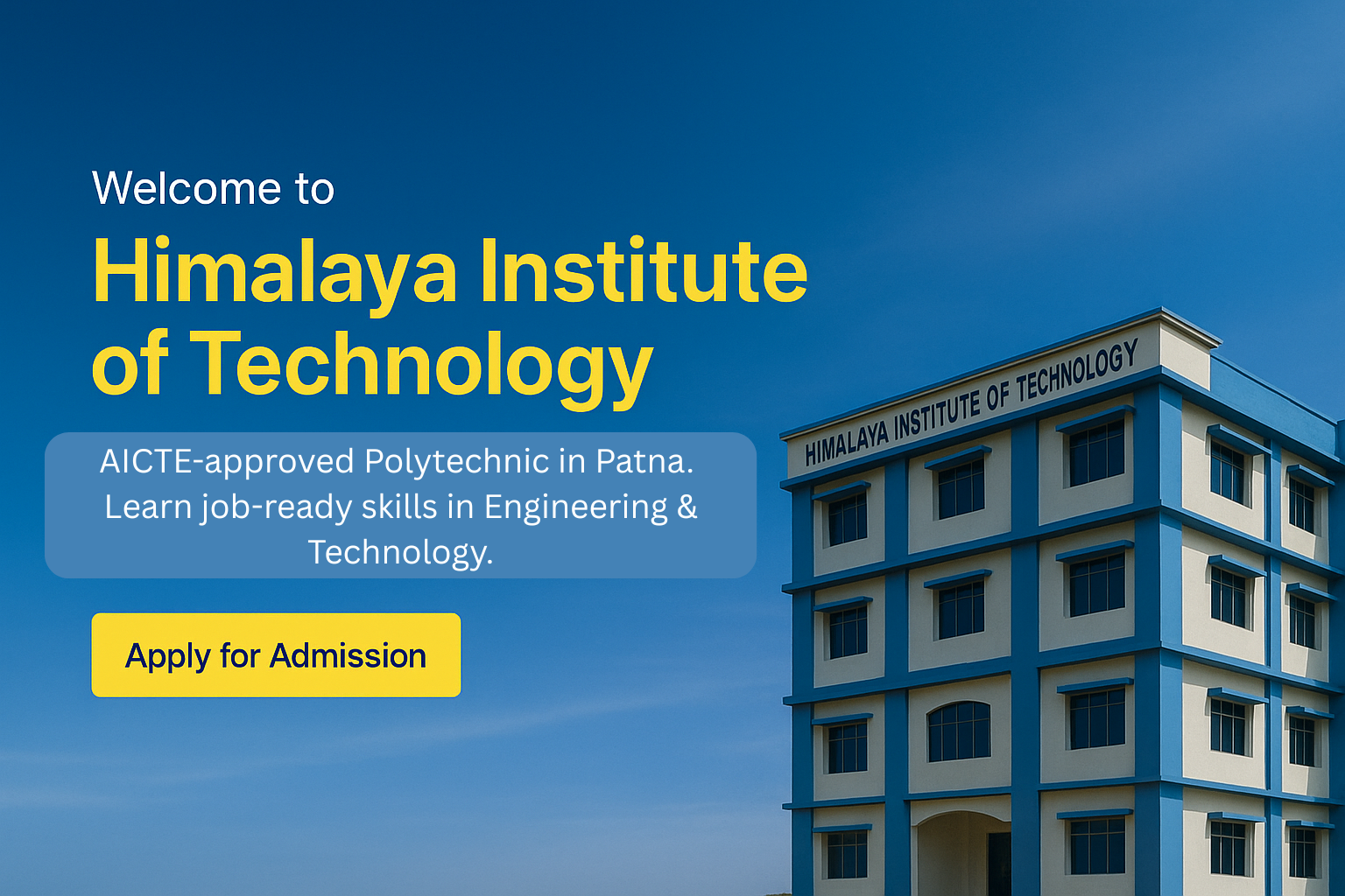 Himalaya Institute of Technology (HIT) is a beacon of technical excellence, established with the vision to provide world-class diploma education. Located in Ebrahimpur, Awadhara, Patna, our institution houses state-of-the-art laboratories and workshops that prepare students with practical, industry-relevant skills.